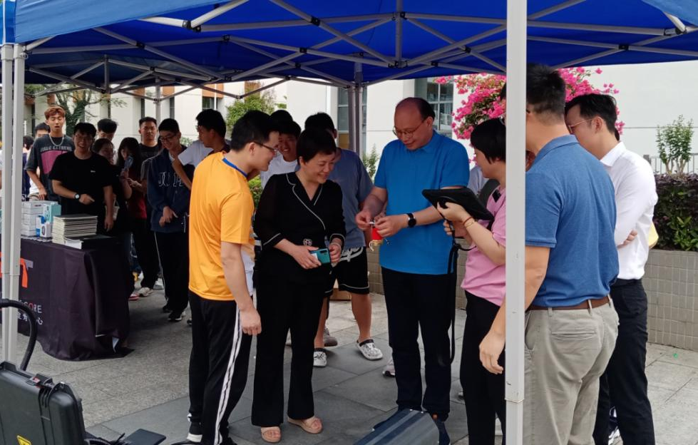 活动现场热闹非凡,同学们自觉排起长队,等候亲手操作“激光大炮”、拆盲盒、领取精致奖品。
