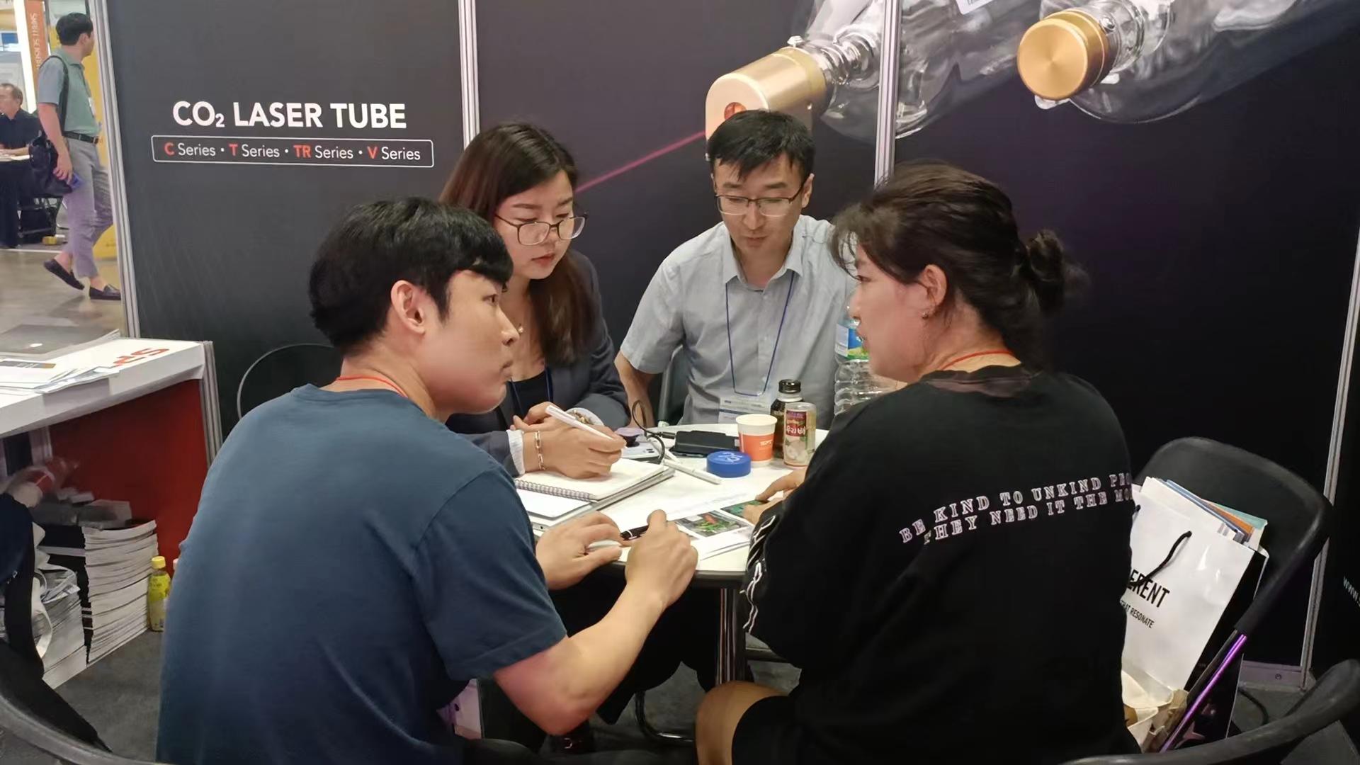 经过三年疫情,钱柜qg777激光再次带着CO2 激光器走出国门。本次在韩国Kintex,我们展示了CO2 射频激光器和CO2激光管,吸引了三星、LG等众多韩国企业,与他们共同学习和交流。
