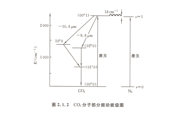 激光器通过电激励把CO2分子激发到000 1上能级,稍后,co2分子从上能级跳到下能级10和020,放出10.6f'm和9.6 F/rrlCo2激光。其中,9.6 )um激光由于竞争效应被抑制,而10.6 t/m激光被谐振腔实现光放大,通过输出镜输出激光co2分子可通过直接电子激励产生粒子数反转,但增益不大。加入N2后,由于N2分子的y-1能级与C09分子的0001能级的高度相近,所以,在低气压连续运转或高气压脉冲运转的器件中会发生能量的共振转移。