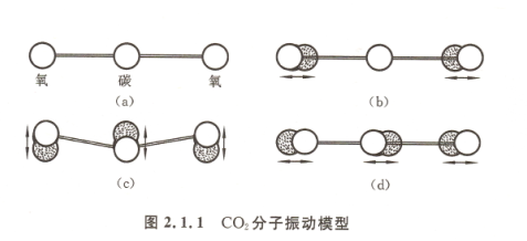 co2分子由线形对称排列的三原子组成。三原子排成直线,中央为碳原子,两边是氧原子,如图2.1.1(a)所示。