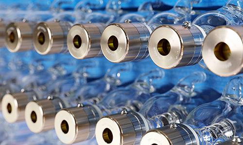 二氧化碳激光器(CO2激光器)是以CO2气体作为工作物质的气体激光器。放电管通常是由玻璃或石英材料制成,里面充以CO2气体和其他辅助气体(主要是氦气和氮气,一般还有少量的氢或氙气);电极一般是镍制空心圆筒;谐振腔的一端是镀金的全反射镜,另一端是用锗或砷化镓磨制的部分反射镜。当在电极上加高电压(一般是直流的或低频交流的),放电管中产生辉光放电,锗镜一端就有激光输出,其波长为10.6微米附近的中红外波段;一般较好的管子。一米长左右的放电区可得到连续输出功率40~60瓦。