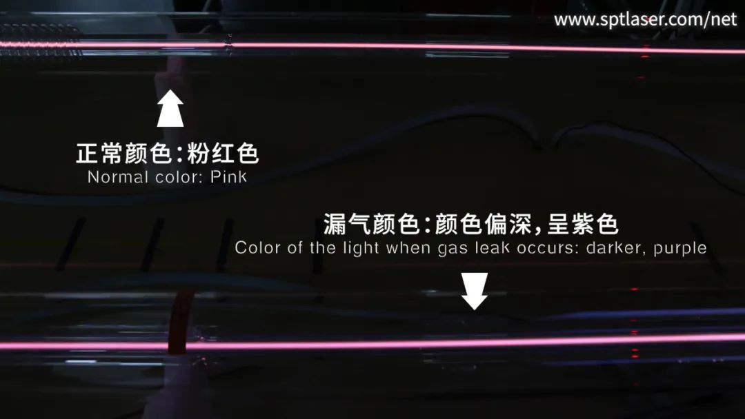 正常情况下激光管呈粉红色,如发现发白或异常颜色可拍摄视频发送给售后人员。