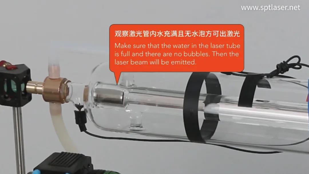 注意使用激光设备时的操作顺序。第一步,给激光管通水。第二步,看冷却水水是否注满且无气泡,水流、水保护是否正常,确认无误才开启激光电源开始运作。最重要的是看激光管通水情况这一步。激光管通水过程中出现空气或流动状况,都可能会造成激光管的损坏。